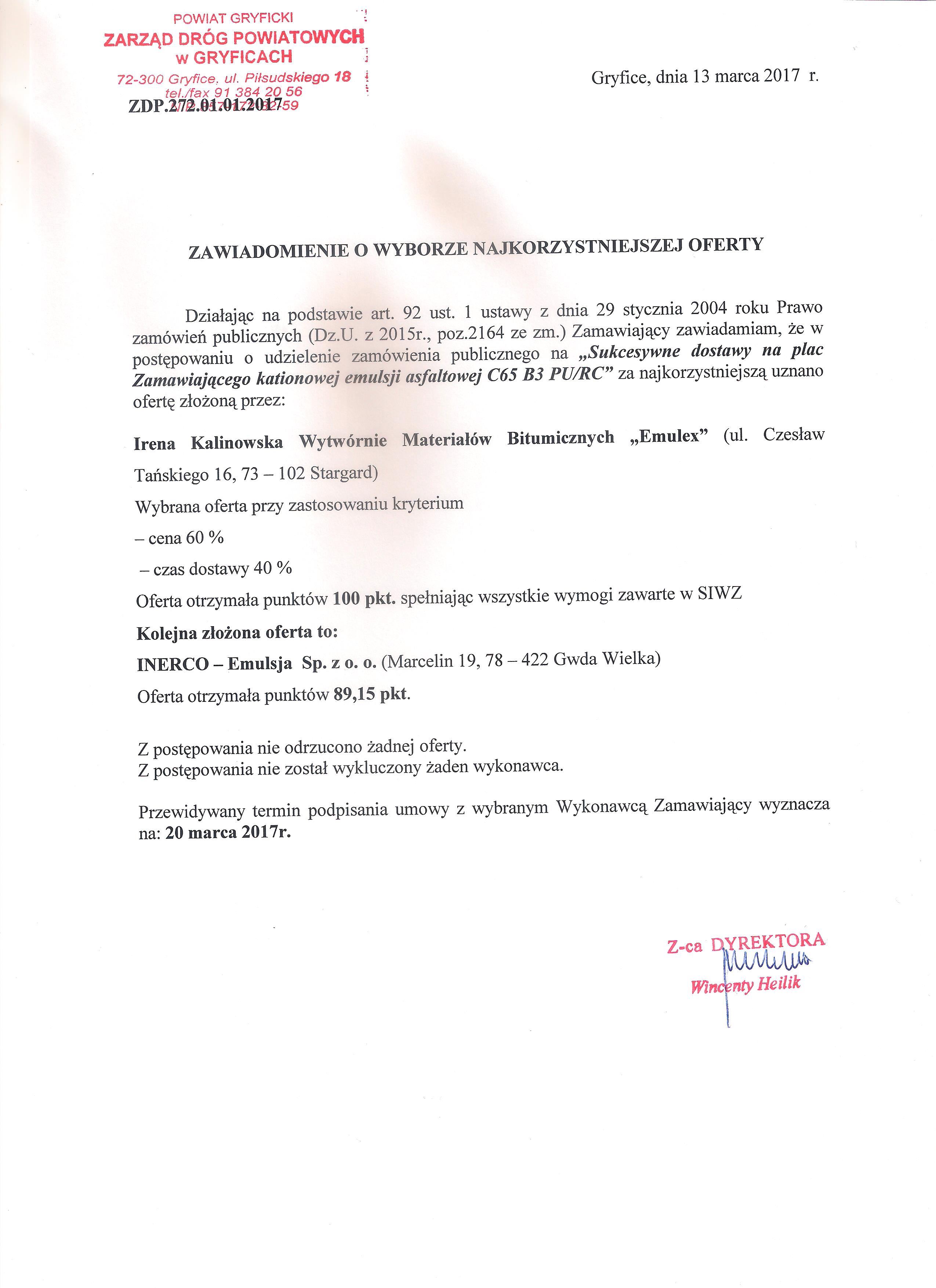 Zawiadomienie o wyborze najkorzystniejszej oferty